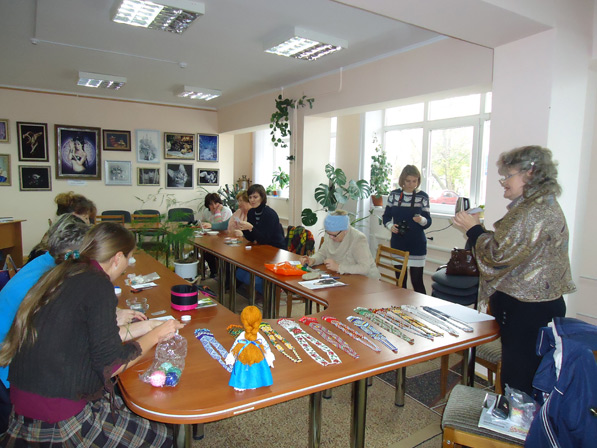Майстер-клас ручного ткацтва бісером 23 жовтня у творчій майстерні при міській центральній бібліотеці з успіхом пройшов майстер-клас ручного ткацтва бісером Людмили Астаф’євої. На зустріч майстриня принесла власні роботи та роботи внучки Аліни (14 років), яка з 10 років займається технікою гердан.