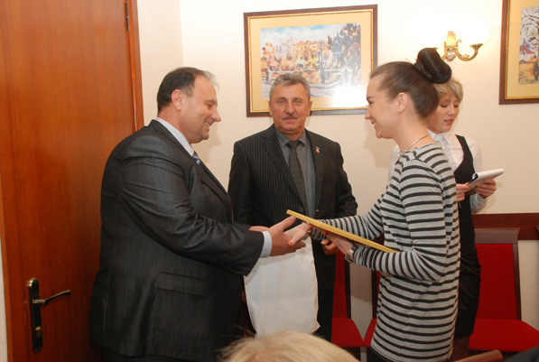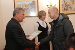 На свято завітали і представники міської влади: перший заступник міського голови Микола Корнійчук та секретар міської ради Володимир Пилипчук. Сьогодні, за словами Миколи Корнійчука, у Борисполі пасажирськими перевезеннями займаються шість перевізників, які обслуговують майже тридцять маршрутів. Щодня по місту курсує близько п’ятдесяти автобусів. Як розповів Микола Петрович, міська влада зі свого боку також намагається сприяти комфортному та безпечному руху на автомобільних дорогах міста: будується нове дорожнє покриття, ремонтується старе, освітлюються вулиці тощо. У свою чергу, Володимир Пилипчук привітав своїх «колег» зі святом – за кермом Володимир Олександрович уже понад тридцять років.