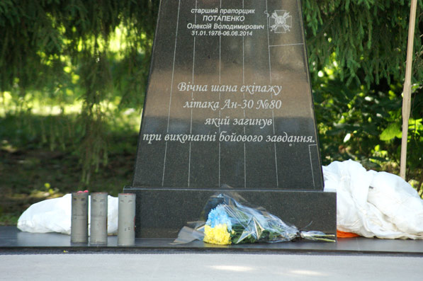 Вчора товариші наших загиблих льотчиків взяли участь у відкритті пам’ятного знаку поблизу міста Слов’янська, на місці, де впав літак, а сьогодні відбувся мітинг-реквієм з нагоди відкриття пам’ятного обеліску загиблим членам екіпажу літака АН-30Б на території військової частини. Цей обеліск, у вигляді крила літака, споруджено на честь екіпажу, який навічно зарахований до транспортної авіаційної ескадрильї «Блакитна стежа» військової частини А2215. Право відкрити обеліск було надано командиру цієї ескадрильї підполковнику Олексію Лук’янову та виконуючому обов’язки військової частини А2215 полковник Олегу Михайленку. Також на мітингу були присутні родичі членів екіпажу, колеги-військовослужбовці, депутати міської ради, громадські активісти, заступник міського голови Людмила Пасенко, голова Бориспільської міської організації ветеранів України Костянтин Пасічний, а також Народний артист України Володимир Талашко – один з акторів легендарної стрічки Леоніда Бикова «В бой идут одни «старики». По завершенню мітингу представники міської влади відправилися до Книшового меморіального паркового комплексу та поклали квіти до братської могили, де поховані троє членів екіпажу.