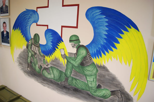 Прийшло на відкриття чимало гостей та друзів учасників АТО та волонтерів, які тепер працюватимуть у цьому приміщенні. Символічно, першим, що потраплятиме в поле зору при вході до новоявленої установи, є стяги Борисполя та України.