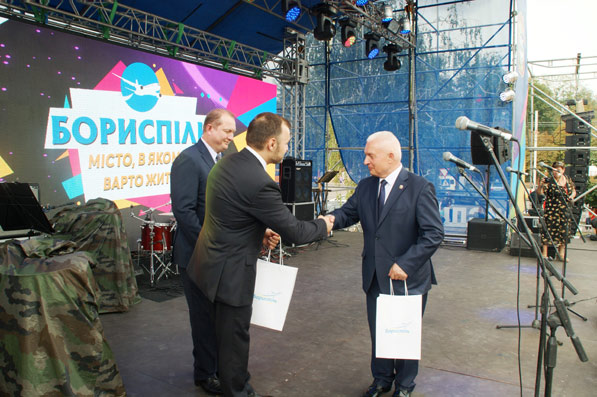 Доброю традицією є вручення почесних нагород у рамка святкування Дня міста. Цього року звання «Почесний громадянин міста Борисполя» отримала лікар-педіатр амбулаторії № 4 Комунального некомерційного підприємства «Бориспільський міський центр первинної медико-санітарної допомоги» Задорожня Олена Іванівна. Також було названо імена тих, кому було вручено «Відзнаки міського голови» - визнання досягнень працівників підприємств, установ та організацій у різних галузях суспільного життя. Продовжив урочистості феєричний виступ військового оркестру 8-го Чернігівського навчального центру Державної спеціальної служби транспорту Міністерства оборони України. Чудовим подарунком для присутніх від Посольства Республіки Молдова в Україні та Почесного Консульства Республіки Молдова у Київській області та місті Бориспіль став виступ народного артиста Молдови Іона Суручану.
