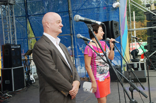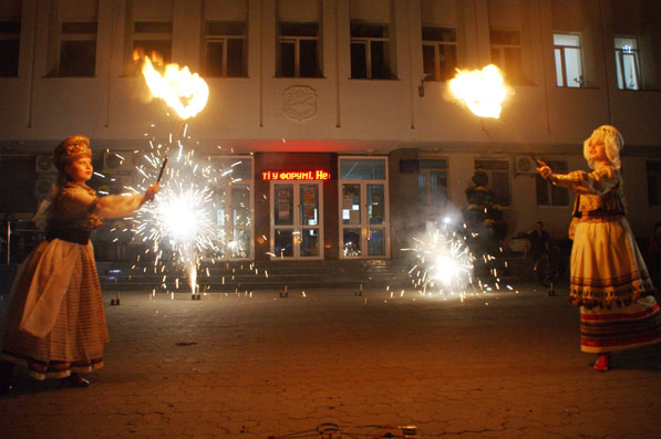 Діти, учасники святково-розважальної програми, запустили у небо різнокольорові кульки як символ усіх найкращих сподівань. Громаду міста сердечно привітав міський голова А.С.Федорчук. До вітань приєдналися Надзвичайний і Повноважний посол Молдови в Україні Руслан Болбочан, Почесний Консул Республіки Молдова в Україні Олег Циганенко, Надзвичайний і Повноважний посол Палестини в Україні Мохаммед аль Асаад, гість зі Сполучених Штатів Америки президент Continuon Energy Group Крег Торлі.