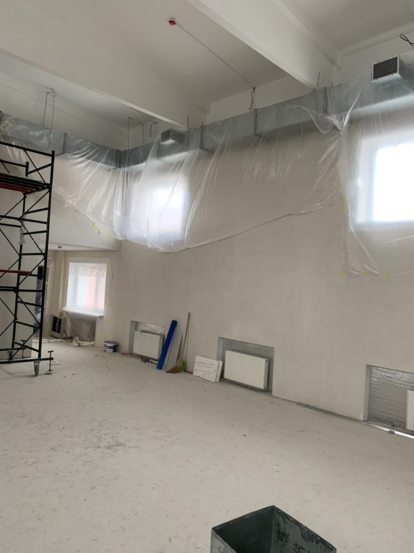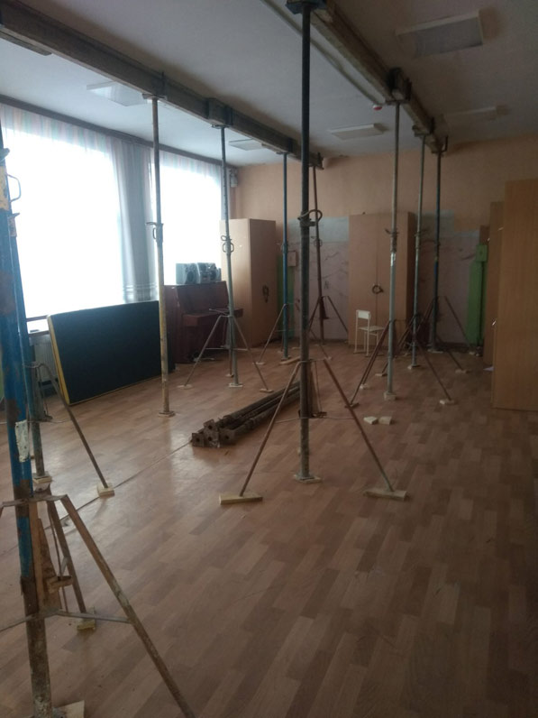 У січні 2021 року під час огляду ходу виконання робіт директор школи запросила нас на перший поверх подивитися на стан плит перекриття, які слугували підлогою для спортивної зали. Неозброєним оком було видно, що плити перекриття прогнулися. І коли ми переглянули проєкт капітального ремонту, з’ясувалося, що проєктувальником закладено стяжку підлоги спортивної зали з важкого бетону товщиною 18 см.