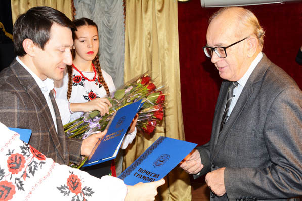 Продовжилися заходи з нагоди Дня вшанування ліквідаторів наслідків аварії на Чорнобильській АЕС у приміщенні Муніципального театру «Березіль». Під час урочистої частини заступник міського голови Євгеній Грона вручив ліквідаторам Почесні грамоти та Подяки виконавчого комітету за активну громадську позицію, мужність, самовідданість, високий професіоналізм, виявлені під час ліквідації наслідків Чорнобильської катастрофи.