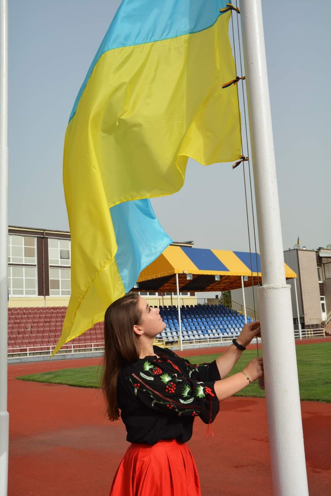 Цього року почесне право підняти Державний Прапор України надали олімпійській чемпіонці з важкої атлетики Наталії Філоненко (Скакун) та кандидатці у майстри спорту з армспорту Анні Лазарець.