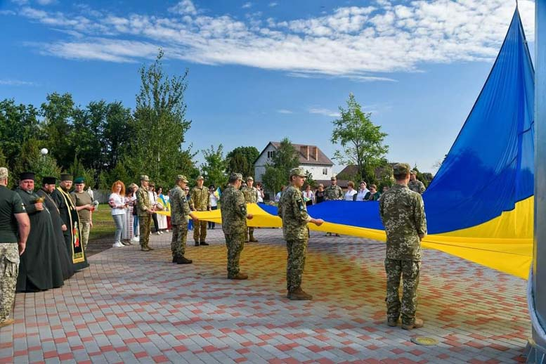 Право підняти Державний Прапор України надано добровольцю, військовослужбовцю, відзначеного почесними відзнаками головнокомандувача Збройних Сил України Валерія Залужного Хрестом хоробрих та Золотим хрестом, медаллю за взірцевість у військовій службі 1 ступеня Павлу Якімчуку з донькою, доньці загиблого Героя Олександра Нестеренка – Анастасії та синові загиблого Героя Дмитра Дзюби – Тимофію.