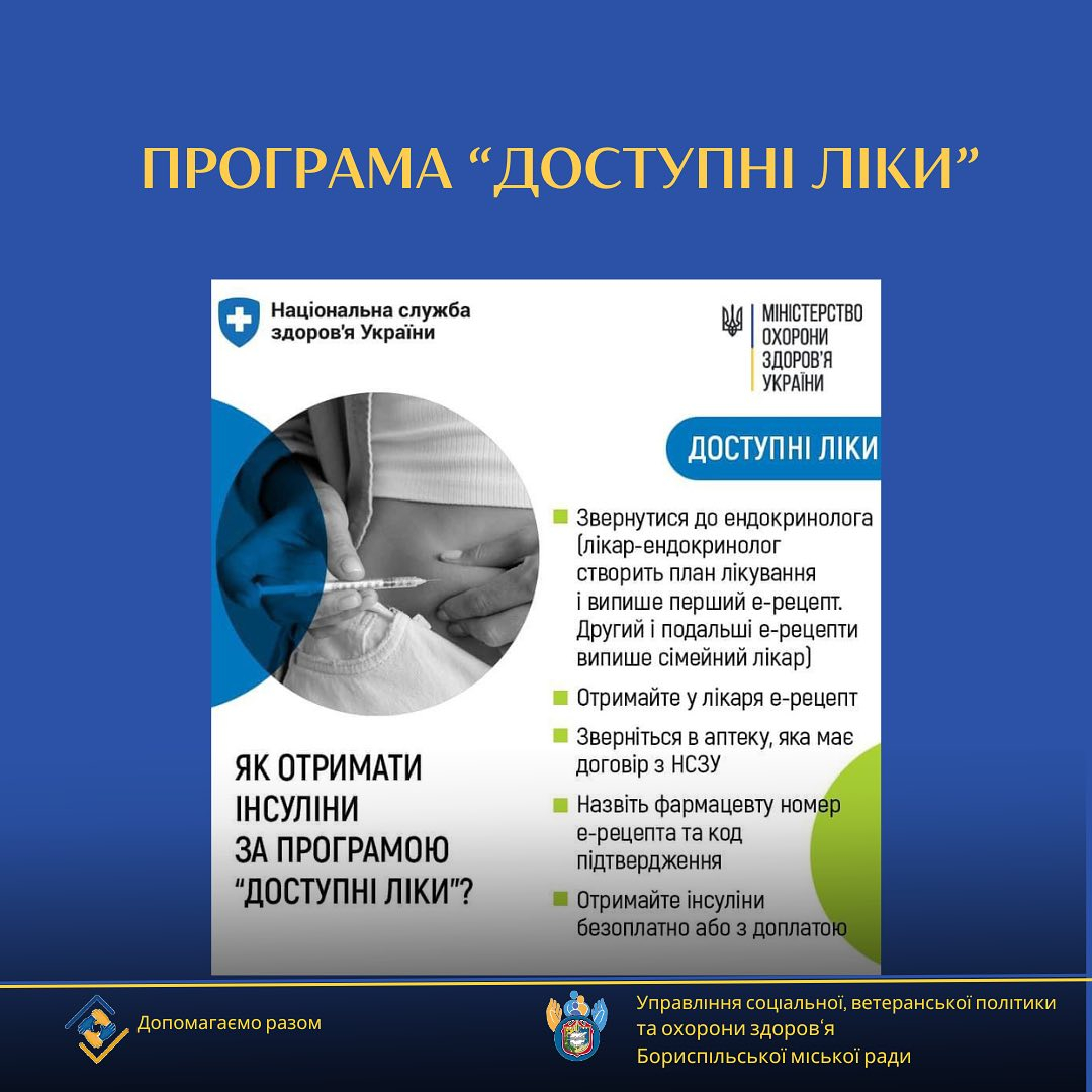 - Знайдіть найближчу аптеку, яка відпускає інсуліни. Впізнати її можна за наліпкою «Доступні ліки + Інсуліни» або дізнатися контакти: