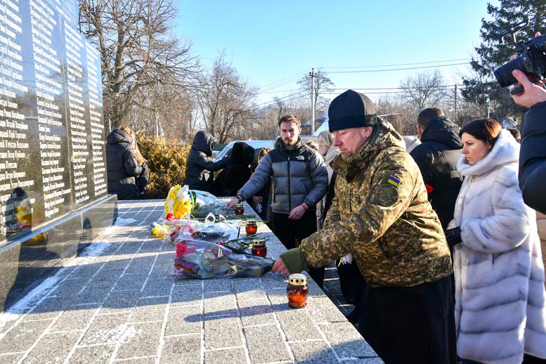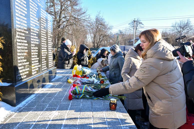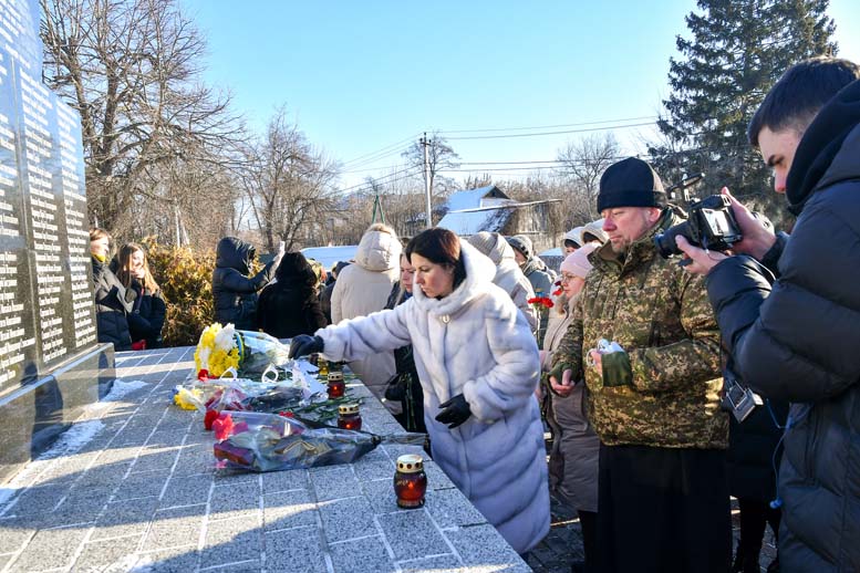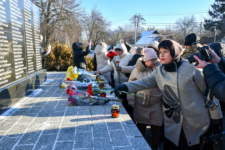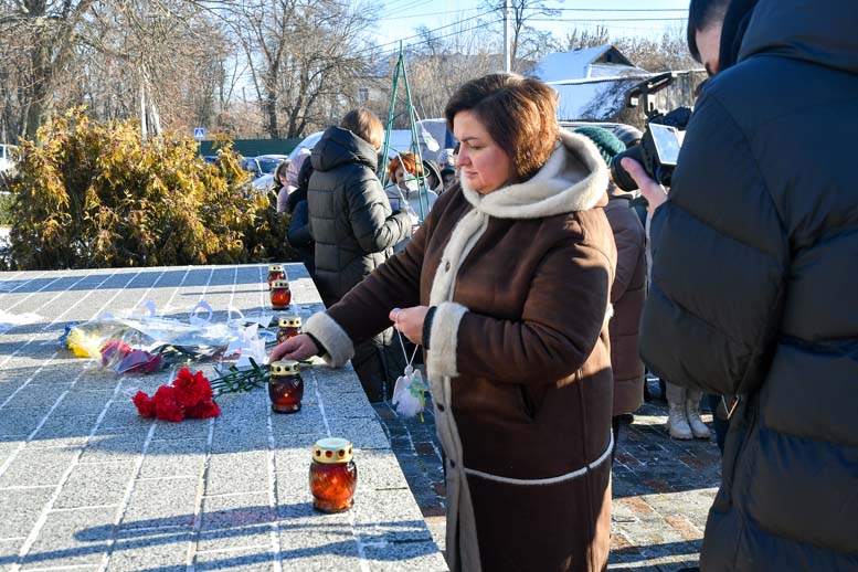 Присутні хвилиною мовчання вшанували пам’ять загиблих Героїв, а опісля – поклали квіти до пам’ятника Героям Небесної Сотні та запалили вогні пам’яті.