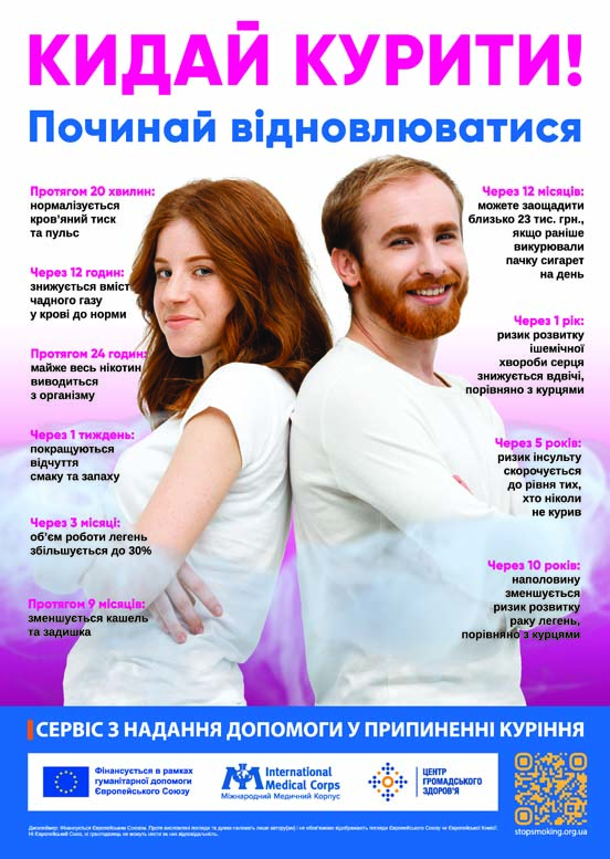 Плану заходів на 2025-2026 роки з реалізації Національної стратегії із створення безбар’єрного простору в Україні на період до 2030 року, затвердженого розпорядженням Кабінету Міністрів України від 25 березня 2025 року № 374-р проводить інформаційно-просвітницьку кампанію щодо зміцнення здоров’я населення, раннього виявлення захворювань, формування навичок здорового способу життя, зокрема щодо зниження рівня поширеності тютюнокуріння, відповідальної самозбережувальної поведінки