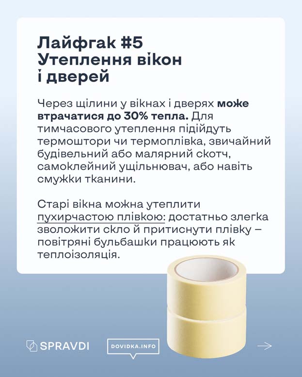 Як зігрітися без світла й опалення: 9 дієвих лайфгаків від Dovidka.Info Центр стратегічних комунікацій в межах проєкту Dovidka.Info оновив матеріали щодо адаптації побуту до можливих обмежень в енергосистемі, які допоможуть кожній родині посилити власну енергостійкість.